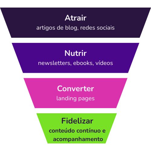Atração → Relacionamento → Conversão → Análise → Ajuste → Atração